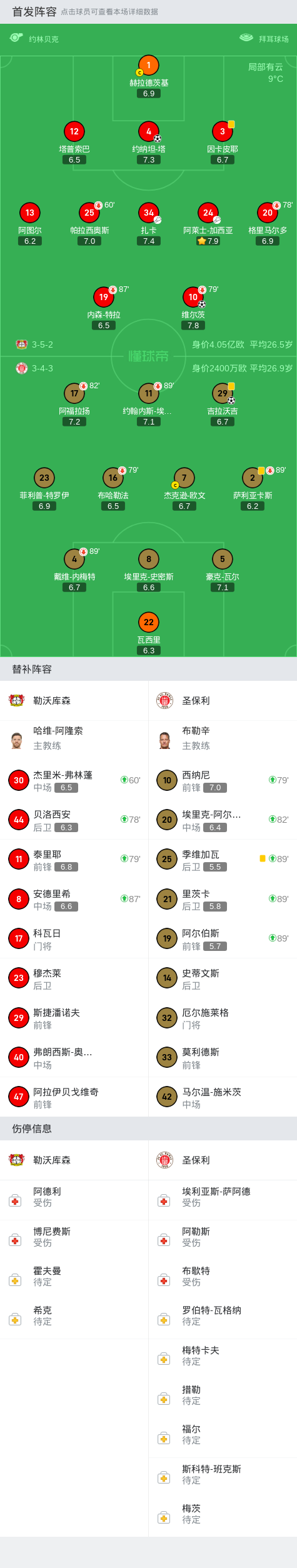 总的来说,这场比赛是一场激烈的德甲对决,勒沃库森最终凭借稳健的表现和精彩的进攻,以2-1的比分战胜了圣保利,展现出了球队强大的实力和团队配合。双方虽然各有所失,但在赛场上的拼搏与奋斗,无疑为观众们带来了一场精彩的比赛。